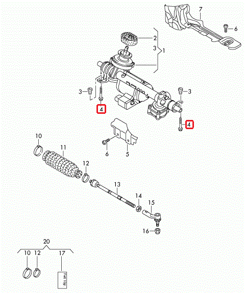 NEW GENUINE VOLKSWAGEN AUDI SKODA STEERING RACK SUBFRAME BOLT 4PCS SET KIT N10579702