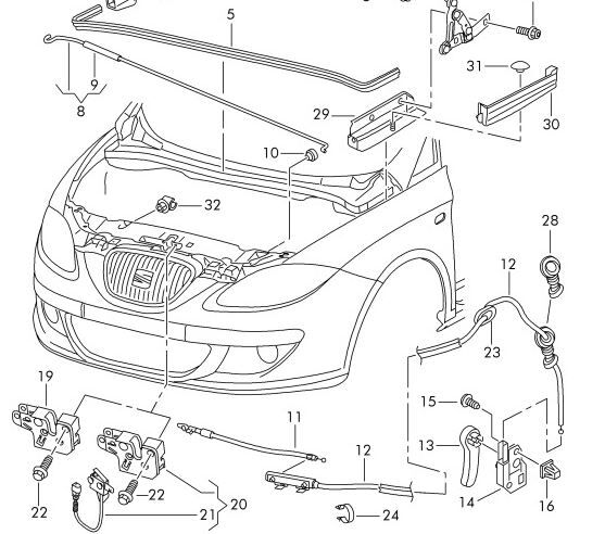 NEW GENUINE SEAT LEON 06-13 REAR LHD BONNET RELEASE LID LOCK CABLE 1P1823535