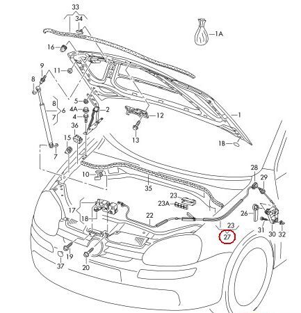 NEW GENUINE VW GOLF 04-09 JETTA 06-10 REAR RHD BONNET RELEASE LID LOCK CABLE 1K2823535A