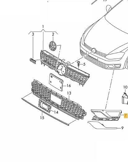 NEW GENUINE VW GOLF MK7 ALLTRACK FRONT BUMPER RIGHT LOWER GRILLE BLACK 5G0853666K9B9