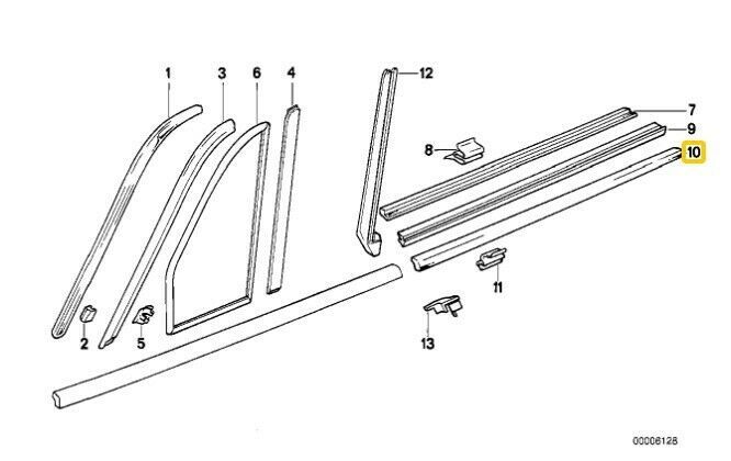 Please place the order only if you are completely confident that this part number is the right one for you and your car – always check the manufacturer part number prior to your purchase! Please note compatibility and part number issues – if you are unsure of your decision – we are here to help. NEW GENUINE BMW 3 SERIES E30 CONVERTIBLE REAR WINDOW RAILING GASKET RIGHT O/S TO FIT: – BMW 3 SERIES E30 CONVERTIBLE NOTE: -IN THE LAST PICTURE PART IS MARKED AS NO. 10 PART NUMBER:51131961794 Brand: BMW