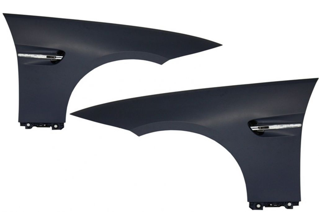 Intro These fenders are meant to convert your BMW E92/E93 in a genuine BMW M3. Design M3 Design Description Front Fenders M3 design equipped with air duct vents and LED turning lights. Fenders are crafted in high quality Polypropylene and are prepared for painting process (primed) Material: Polypropylene *Original windscreen washing fluid bottle must be replaced. *Washing fluid bottle not included. Fitting and Installation Fitting instructions not included. Installation in an authorized car service is highly recommended. Package Contains: One set of front fenders Air duct vents and LED turning lights Certificates Product without E-mark/ABE/TUV. These are high quality aftermarket parts. Not suitable for: BMW E92 M3 (2006-2013) BMW E92 GTS (2010-2011) BMW 3 Series E90 (2004-2011)