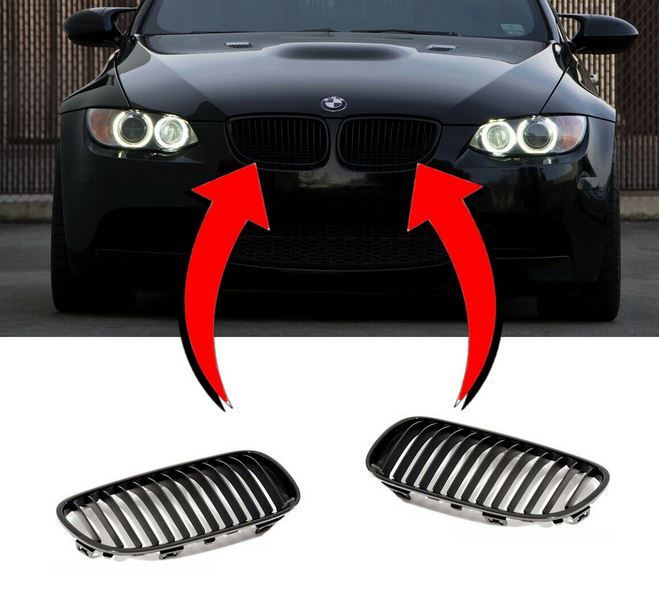 NEW GENUINE BMW 3 SERIES E92 E93 KIDNEY PERFORMANCE BLACK GRILLS PAIR SET NS+OS 51712158985 + 51712158984