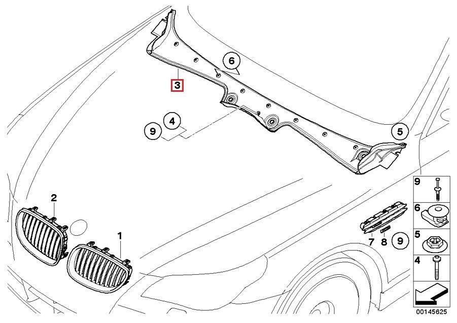 Please place the order only if you are completely confident that this part number is the right one for you and your car – always check the manufacturer part number prior to your purchase! Please note compatibility and part number issues – if you are unsure of your decision – we are here to help. FOR SALE IS NEW GENUINE BMW 5 SERIES WINDSHIELD COWL PANEL COVER TO FIT: – BMW 5 SERIES E60/E61 (2003 – 2010) NOTE: – PART FITS BOTH LHD (LEFT HAND DRIVE) AND RHD (RIGHT HAND DRIVE) MODELS. – PART FITS BOTH LCI (FACELIFT) AND NON LCI MODELS. PART NUMBER:51717027083 Brand: BMW