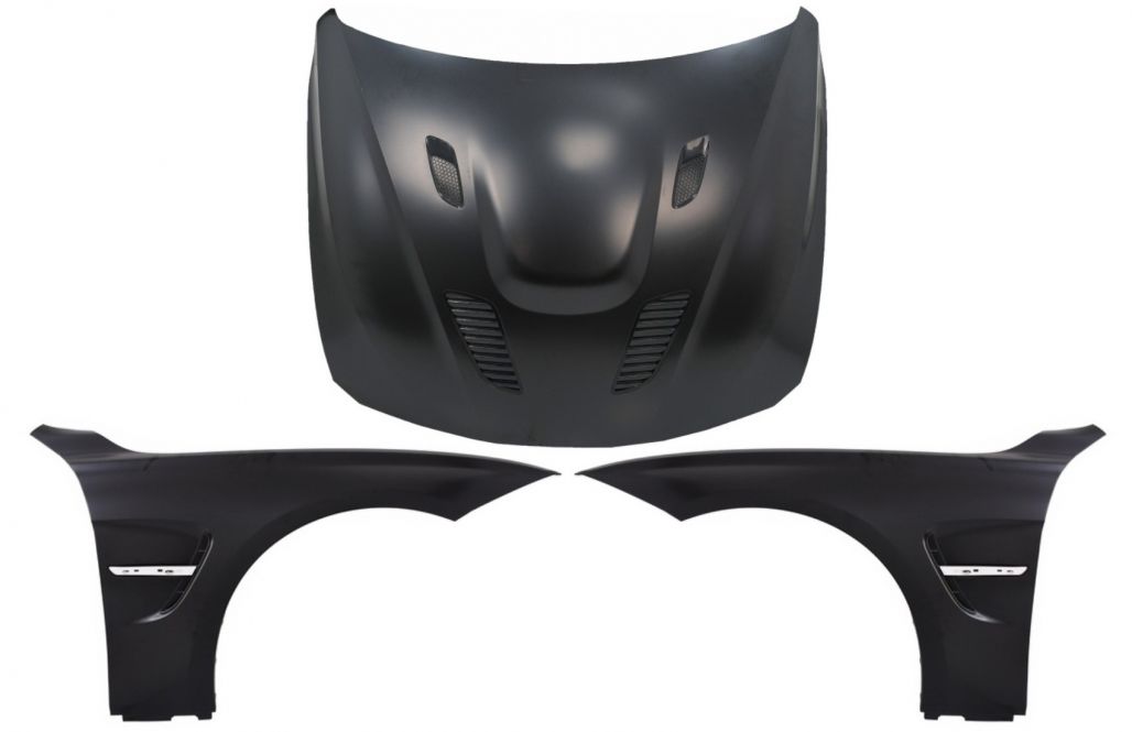 Intro This package is meant to bring your BMW an aggressive and exclusive look. Design M3 Design Description Hood Bonnet Material: Stainless Steel Front Fenders equipped with air duct vents. Fenders are crafted in high quality steel and are prepared for painting process (primed) Fitting and Installation Fitting instructions not included. Installation in an authorized car service is highly recommended. Package Contains: Hood Bonnet One set of Front Fenders (left-right) Air Duct VentsReference number OE part number (comparative purpose)41007290944 Certificates Product without E-mark/ABE/TUV. These are high quality aftermarket parts. Not suitable for: BMW 3 Series F35 (2011-2019) BMW M3 model F80 BMW M4 model F82 F83