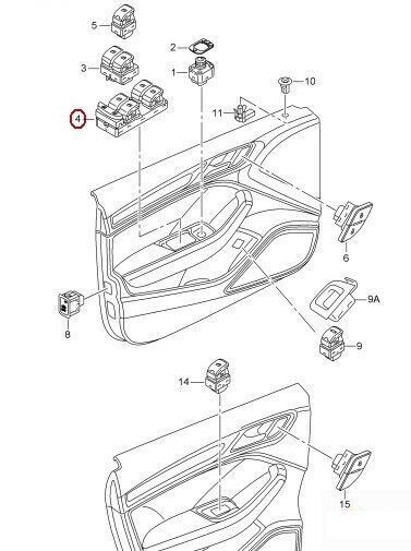 NEW GENUINE AUDI A3 13-16 DRIVERS SIDE SWITCH FOR WINDOW REGULATOR BLACK SILVER 8V0959851A