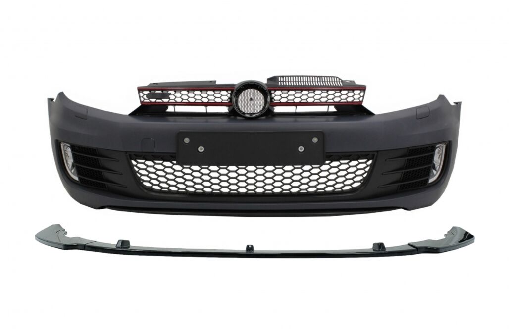 Front Bumper with Lip Extension Spoiler Piano Black suitable for VW Golf VI Golf 6 (2008-2013) GTI Look