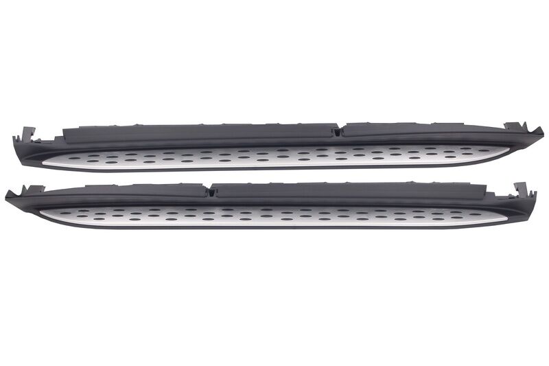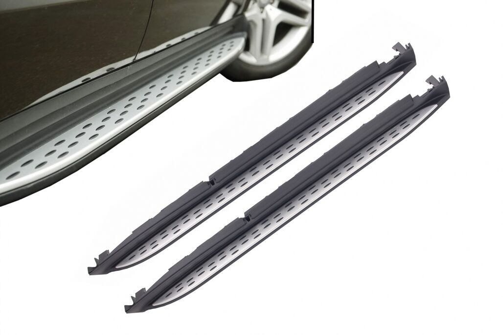 Intro Stylish and functional running boards ease your entry and exit while providing a rugged element of design. Grippy rubber studs dot the running boards, for a surer step even in inclement weather. Design Facelift Description Running boards, side steps made of high-quality stainless steel, aluminum, and PVC. Fitting and Installation Fitting instructions not included. Installation in an authorized car service is highly recommended. Package Contains: One set of running boards (side steps) left right Fitting Accessories Certificates Product without E-mark/ABE/TUV. These are high quality aftermarket parts. Not suitable for: Mercedes GL-Class X164 (2006-2012)