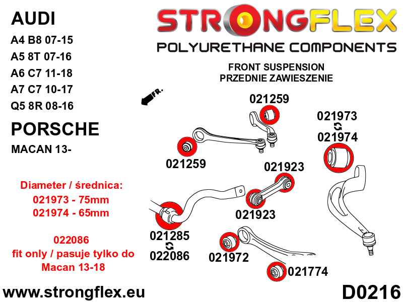 021974A: Front lower wishbone rear bush 65mm SPORT