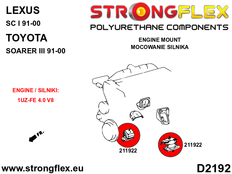 Toyota Soarer 91–00 - The 1UZ-FE engine was also fitted to other Toyota and Lexus models, but mountings may be different. Before buying, make sure that the mount fits your model.