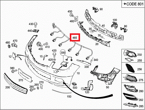 NEW GENUINE MERCEDES C CLASS W204 FRONT BUMPER PDC WIRING LOOM A2044400035